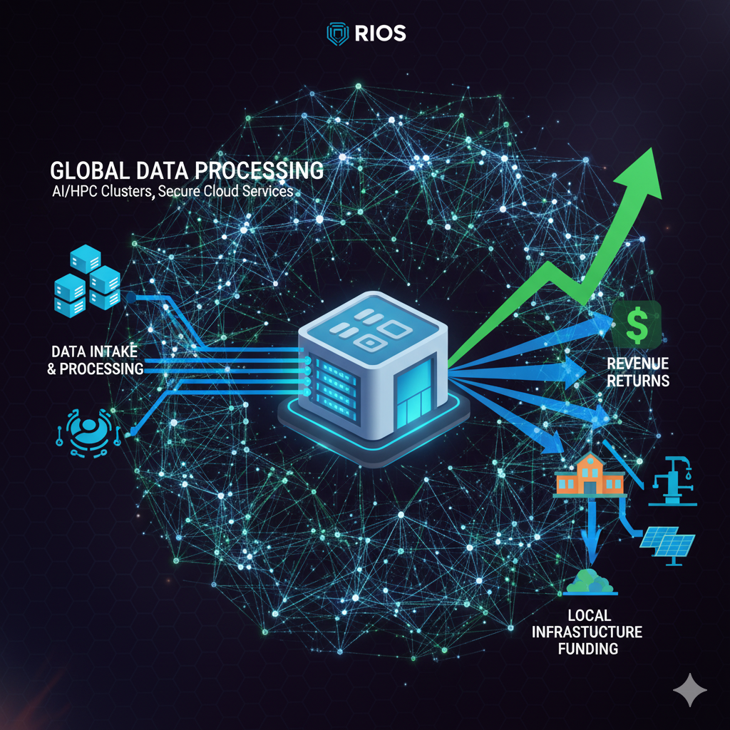 At the heart of every RIOS Campus is a Core Compute Cluster, a high-performance computing system designed to process high-demand global AI workloads.[1] This cluster serves as the primary revenue-generating component of the system, with the income produced being reinvested to fund and maintain the local infrastructure.[2] This innovative model turns infrastructure from a cost center into a revenue-generating asset.