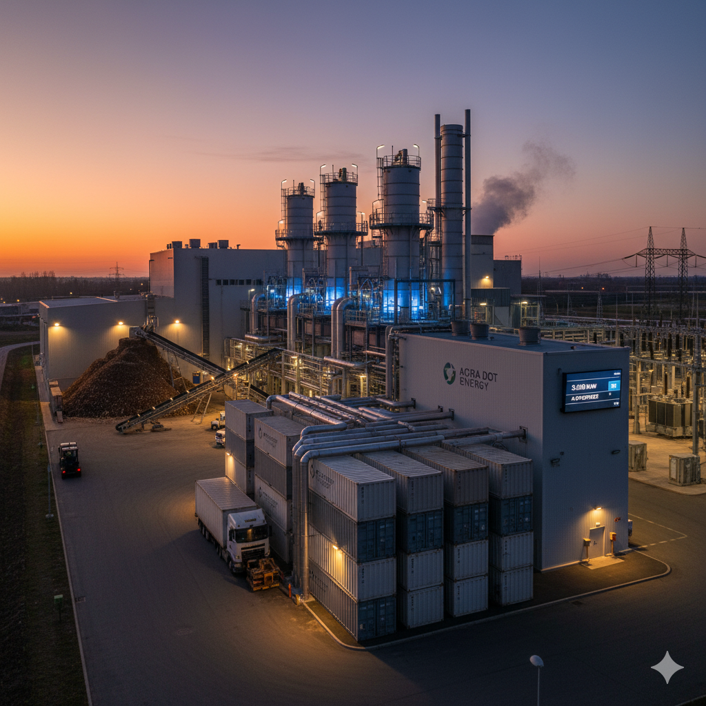 The Agra Dot Energy SPS-3MW is the definitive solution for industrial-scale energy sovereignty. This is a multi-megawatt, baseload power plant, engineered for the mission-critical demands of large-scale operations. It provides a formidable 3 MW of continuous, unwavering, grid-quality electricity by transforming your regional biomass and organic waste streams into a clean, on-demand fuel source.