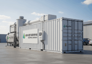 ADE-SPS-500kW-NA”The Agra Dot Energy SPS-500kW The strategic entry point for enterprise-scale energy sovereignty. The SPS-500kW is a complete, containerized power plant that transforms ~10 tons of local biomass per day into a continuous, unwavering 500 kW of grid-quality, baseload electricity.